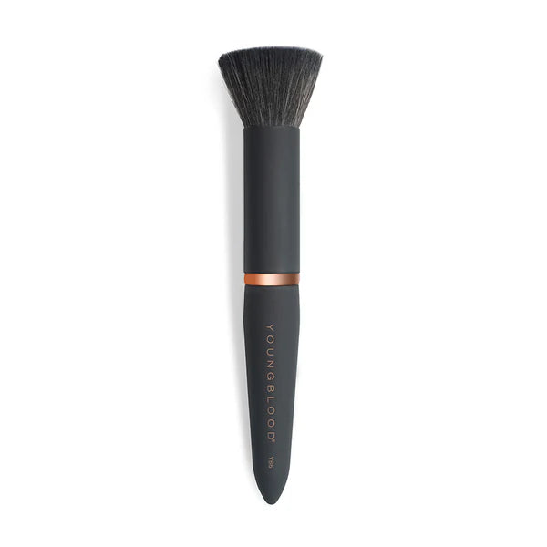 A flat-top blending brush to buff liquid foundation and blend in powders for a moderate to full coverage application.